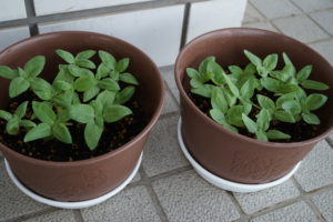 丸い鉢がお花で、長い鉢が野菜です。